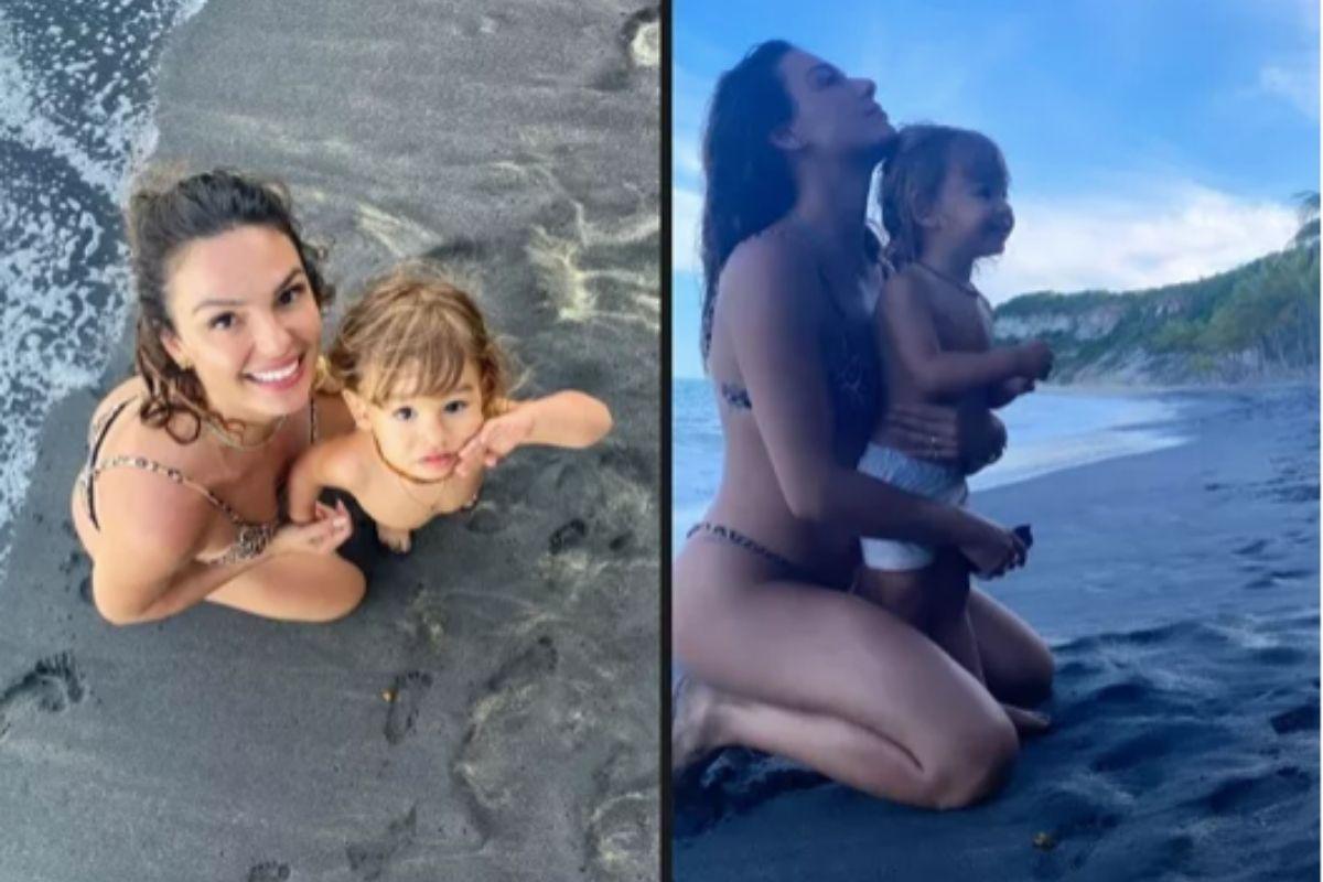 Na primeira imagem, divulgada nos Stories a mãe aparece olhando para cima segurando na mão de Rael, ambos usando roupa de banho. Ao fundo apenas areia e um pouco do mar, deixando bem claro que eles estão se divertindo no litoral.