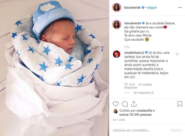 Isis Valverde mostra foto de Rael recém-nascido e declara: “Que saudade!”