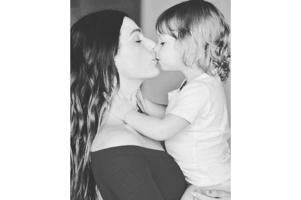 “Meu amor, minha razão de viver! Nosso mundo”, legendou a mãe, que na primeira imagem aparece com Rael no colo, abraçados, olhando para a câmera.