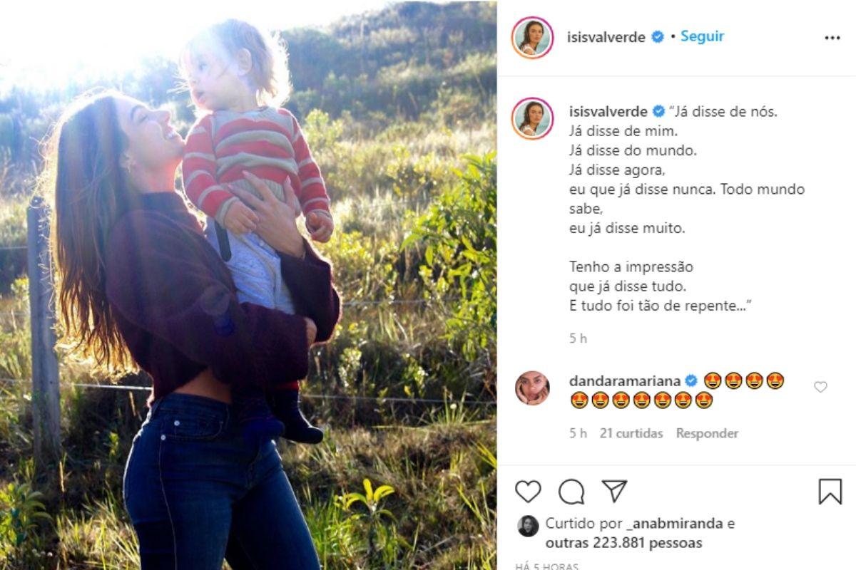 A atriz Isis Valverde usou as redes sociais para compartilhar imagens do filho, Rael, de um ano e sete meses, brincando no campo. “Nossa roça”, escreveu a famosa ao compartilhar uma foto do garoto sorridente sentado no chão. Além da foto do filho, a atriz publicou também uma imagem segurando a criança no colo. Nessa segunda publicação, a famosa fez uma declaração para o bebê.