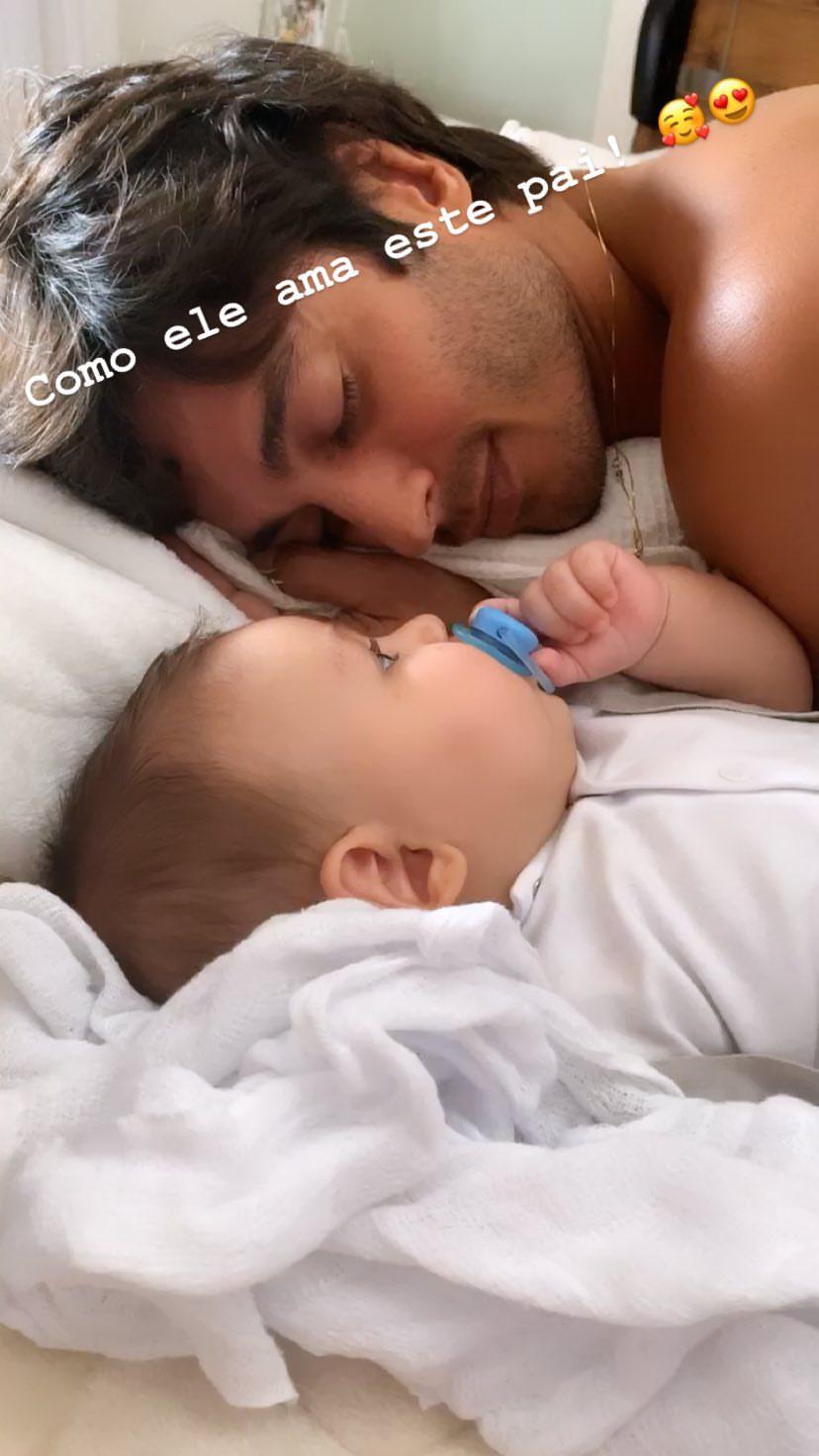 O bebê de 4 meses apareceu também em um vídeo superfofo fazendo carinho no pai, André Resende. A atriz ainda babou com a relação entre os dois e disse: “Como ele ama este pai!”. Olha só: