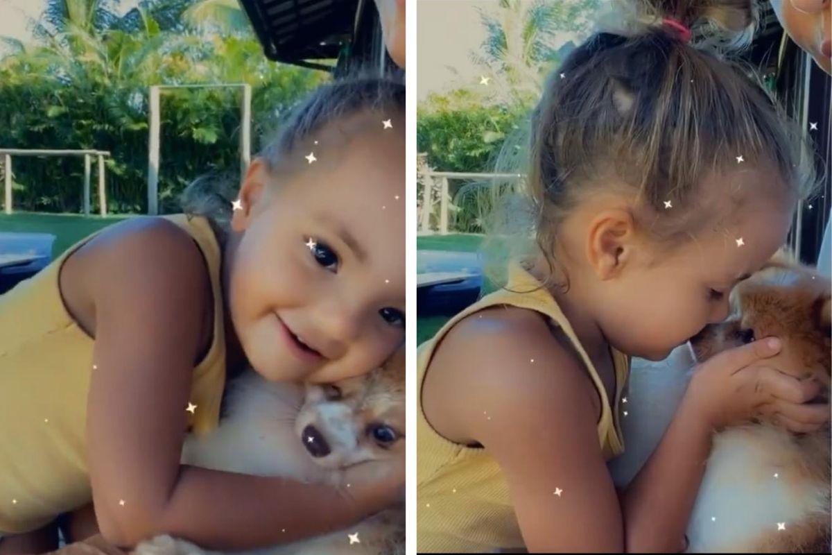 Pelo jeito, a fofura na casa de Ivete não para! Recentemente a cantora publicou vídeo da irmã gêmea da Marina, a pequena Helena, enquanto fazia carinho no cachorro da família. Na gravação ela aparece abraçando e beijando o pet, deixando a mãe derretida de amores ao filmar.