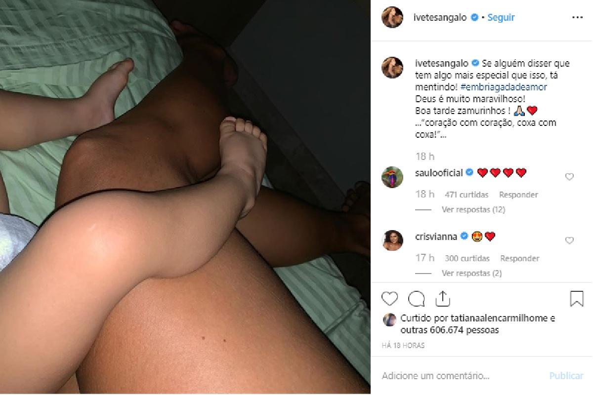 Ela levou uma das filhas, não disse qual, para dormir com ela na cama. Ivete fez questão de compartilhar a foto da bebê dormindo em seu colo. “Se alguém disser que tem algo mais especial que isso, tá mentindo! #embriagadadeamor! Deus é muito maravilhoso!”, se declarou.