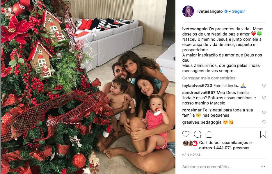 Ivete Sangalo publicou uma foto, nesta terça-feira (25), da família completa comemorando o Natal em seu perfil do Instagram, onde agrega quase 25 milhões de seguidores.