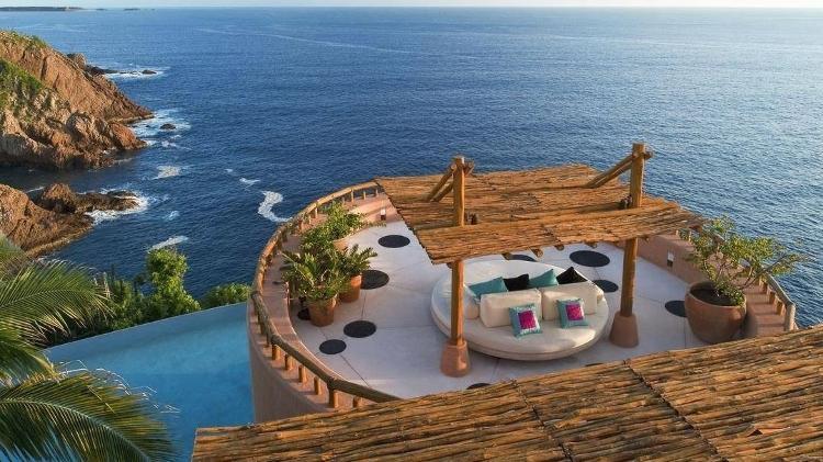 A casa fica à beira de um precipício. Não há caminho direto para a água, mas “estar em um penhasco é a melhor maneira de estar no oceano”, ele declarou. “Não há insetos, nem caranguejos e, além disso, é mais fácil de sair se houver furacões”.