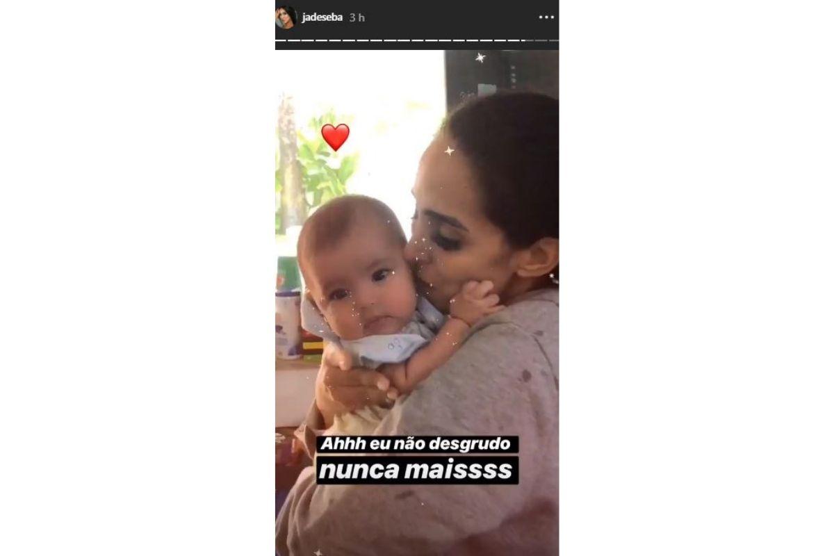 Nos stories, Jade comentou: “Ar puro! Depois de 15 dias! Podia estar sol, mas está chovendo. Ai vai ser muito difícil fazer 15 dias de repouso. Vão ser 30 dias no total”. A influencer mostrou também aos seguidores, um momento com o filho, de dois meses: “Não desgrudo nunca mais”, escreveu dando beijos no menino.
