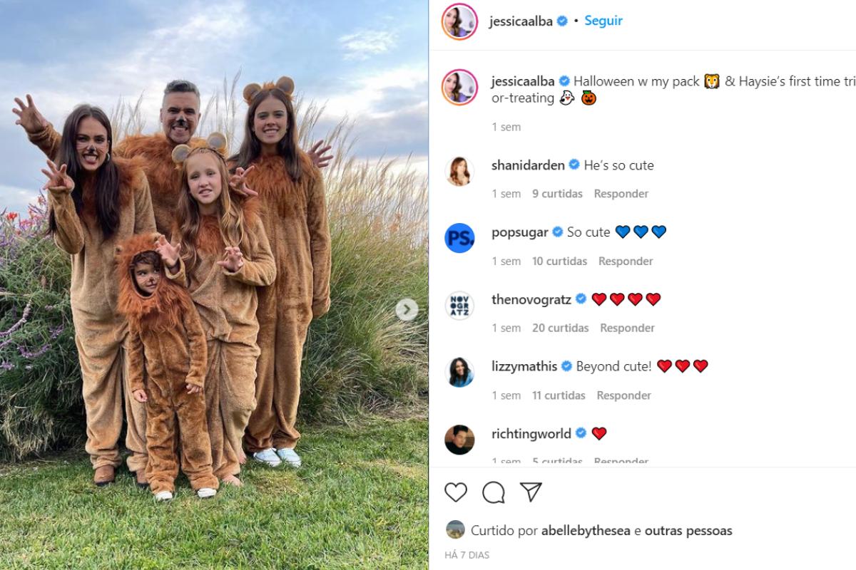 Jessica adora compartilhar os momentos em família com os quase 20 milhões de seguidores no Instagram. No fim do mês passado, a atriz utilizou com os filhos e marido uma fantasia de leão combinando para o Halloween. Para ver este conteúdo, clique aqui.