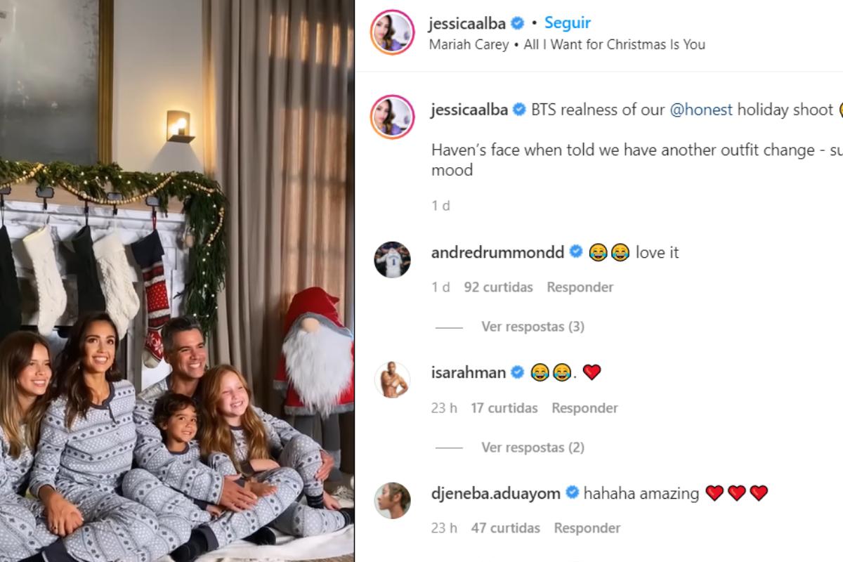 Hilário! A atriz norte-americana, Jessica Alba, de 40 anos de idade, compartilhou no último domingo, dia 07 de novembro, um vídeo por trás de sua sessão de fotos de férias em família. Ela é mãe das filhas Honor e Haven, além do menino Hayes, todos frutos do relacionamento com o produtor cinematográfico Cash Warren.