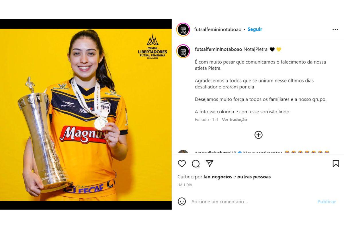 Pietra foi diagnosticada com hepatite autoimune e não resistiu (Foto: Reprodução Instagram futsalfemininotaboao)