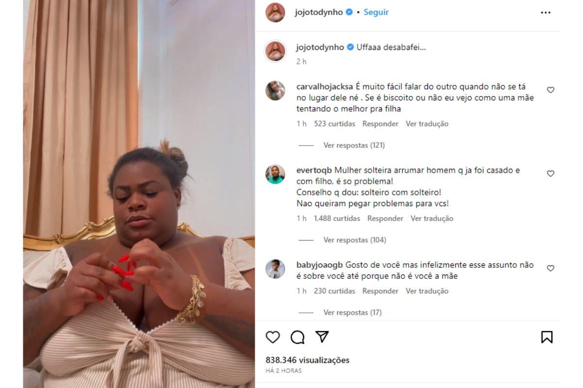“Sua filha poderia ter muito mais, porque, se eu faço por pessoas que eu nem conheço, imagina conhecendo. Me desculpem, eu não quero dentro da minha casa. Que ele pegue, leve para a casa da avó, fique lá o final de semana inteiro, mas eu não quero. Sabe por quê? Eu vou querer fazer tudo, dar de tudo e, daqui a pouco, do jeito que a mãe é, a criança cresce e ela está olhando a minha casa para dar informações. Eu sei bem do seu caráter.” desabafa Jojo em seus stories no Instagram respondendo a polêmica que envolveram seu nome.
