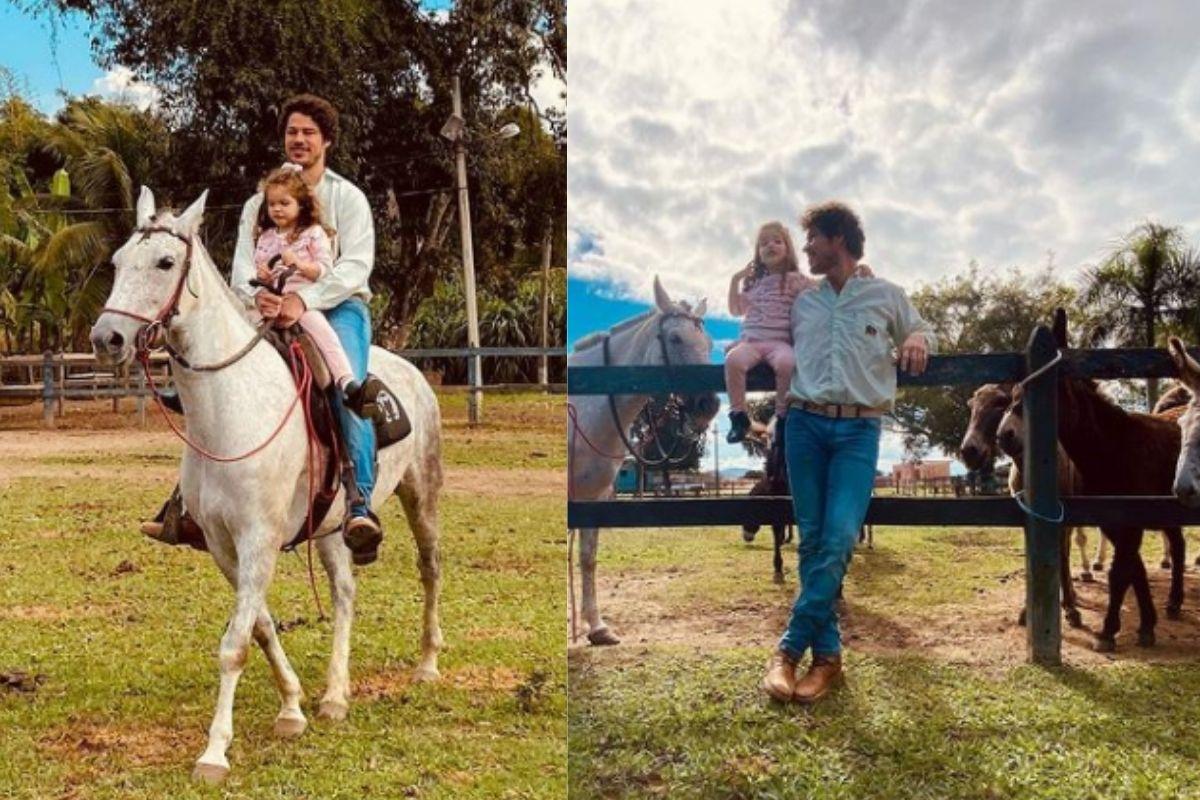 O ator resolveu levou a filha para se conectar com a natureza e aproveitou para fazer um passeio a cavalo. Nas imagens, o pai aparece abraçado com a menina e andando à cavalo. Ambos mostram se divertir muito com o passeio de pai e filha.