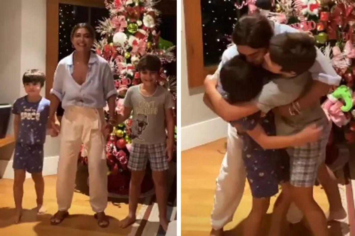 Nas imagens os meninos correm para abraçar a mãe. “O bom de viajar… é voltar pra casa!!!!!!!! É amor demais”, disse a atriz, com vídeo de mãos dadas, pulando e abraçando os dois filhos, Pedro e Antônio, ambos de seu casamento com o empresário Dudu Baptista.