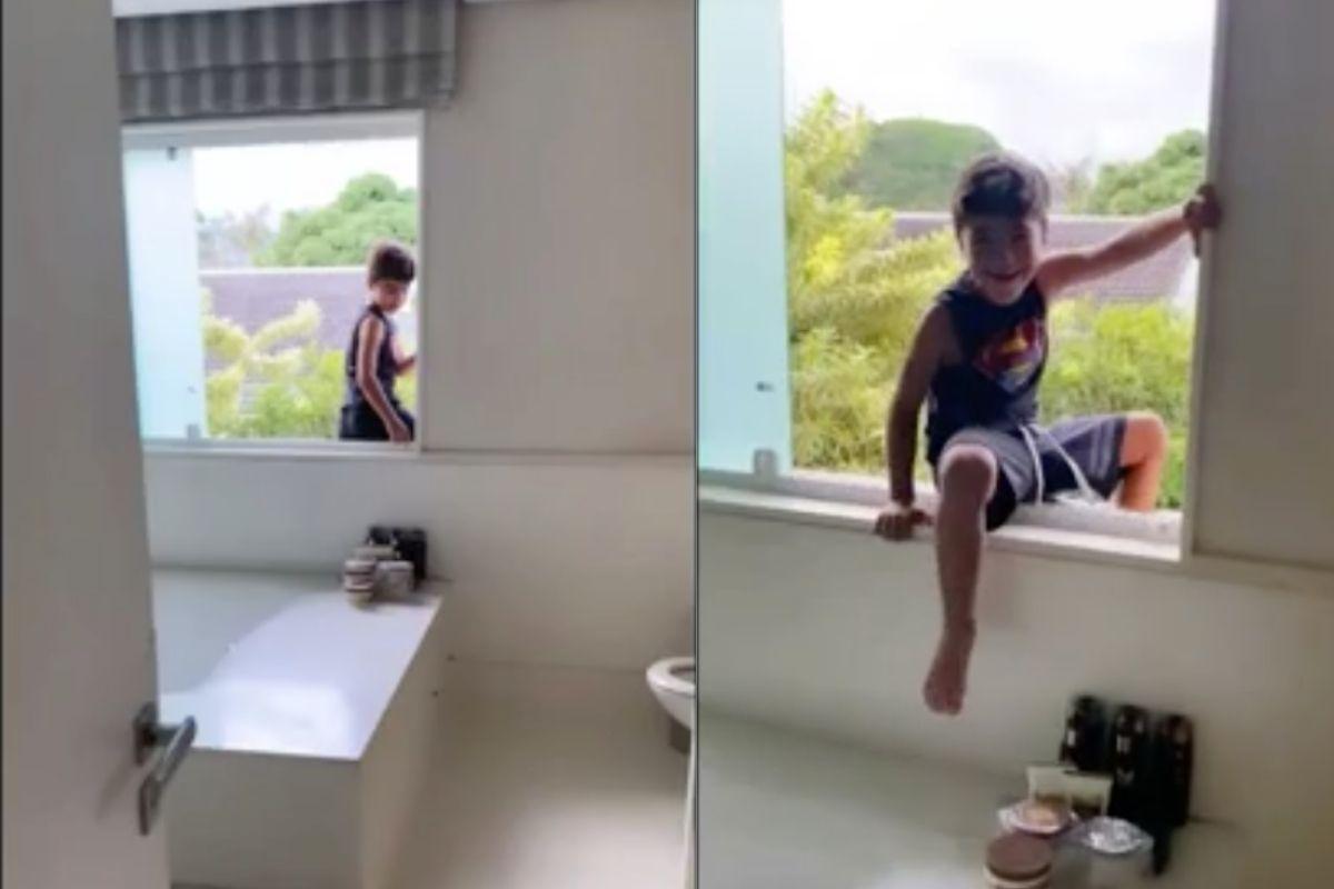 No último domingo, 10 de janeiro, Juliana Paes se assustou ao ver Antonio, fruto do casamento da mãe com Carlos Eduardo Baptista, pulando a janela do banheiro da casa. O momento foi registrado e publicado no Instagram da famosa. Nas imagens, a atriz aparece chegando no local e vendo o garoto já com as duas pernas para fora.
