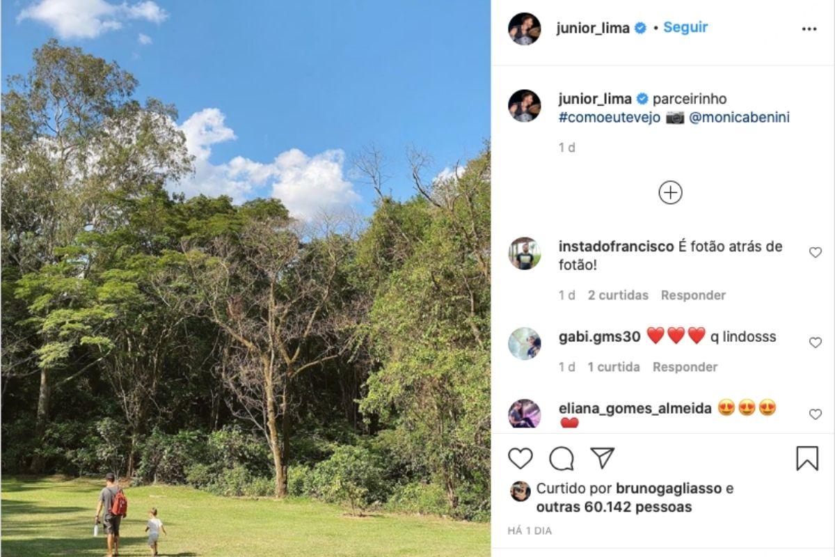 Nesta segunda-feira, 16 de novembro, Junior Lima, da antiga dupla com Sandy, publicou foto nas redes sociais aproveitando a natureza ao lado do filho, Otto. Segundo a Caras, o registro foi tirado pela esposa do cantor, Monica Benini que foi marcada no post. No clique, pai e filho estão andando em uma linda área rodeada de enormes árvores.