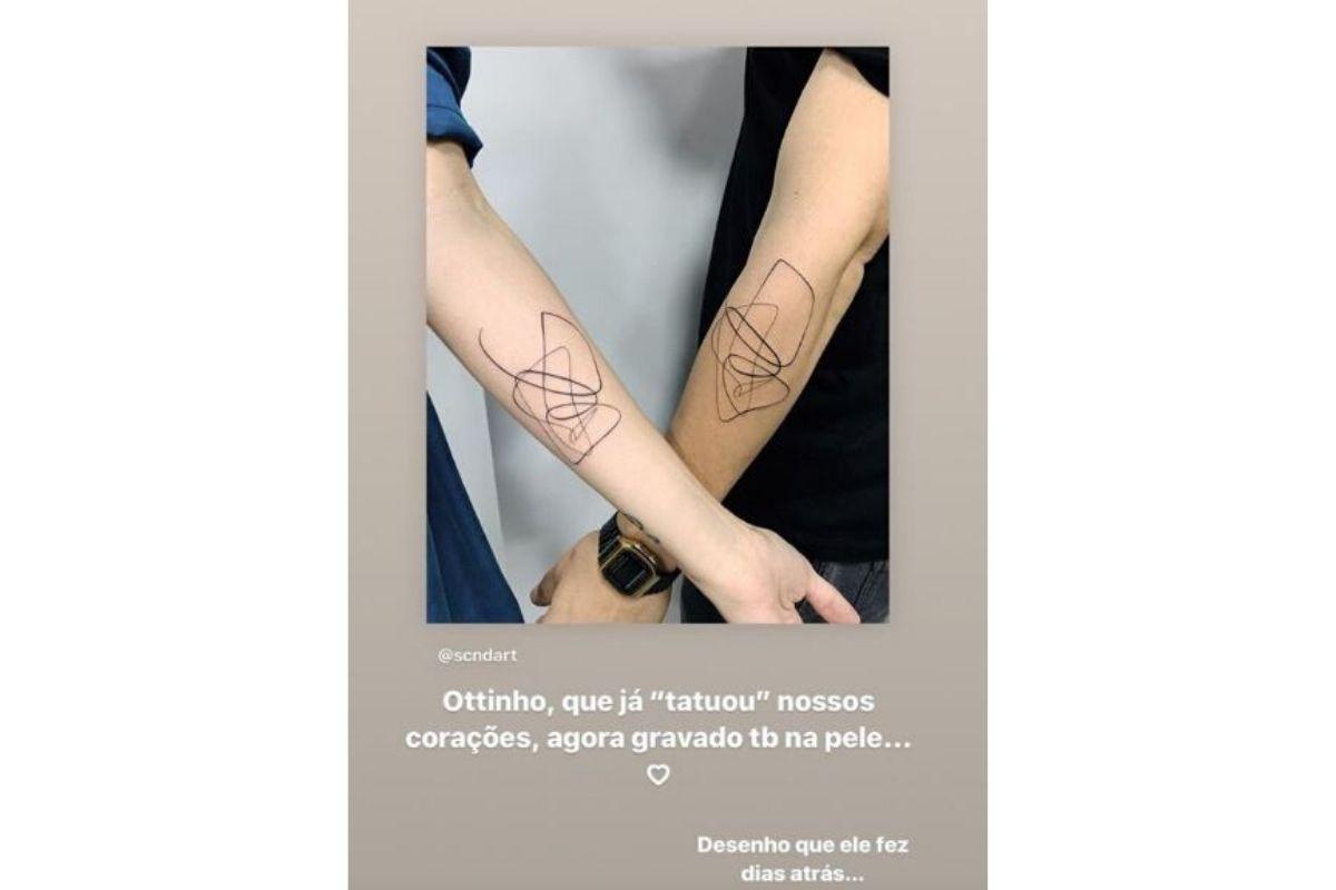 Um tempo depois, Junior publicou o resultado da tatuagem e, como prometido, explicou o significado. O desenho era uma série de rabiscos entrelaçados. “Isso aqui quem desenhou foi o Otto. É um desenho que a gente gostou tanto que resolvemos tatuar. A Monica vai fazer também”, disse.