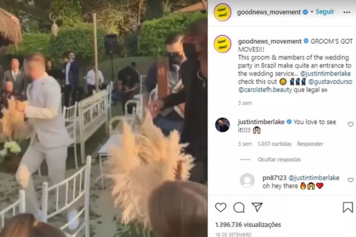 Justin Timberlake comenta vídeos de noivos brasileiros (Foto: Reprodução / Instagram / G1)