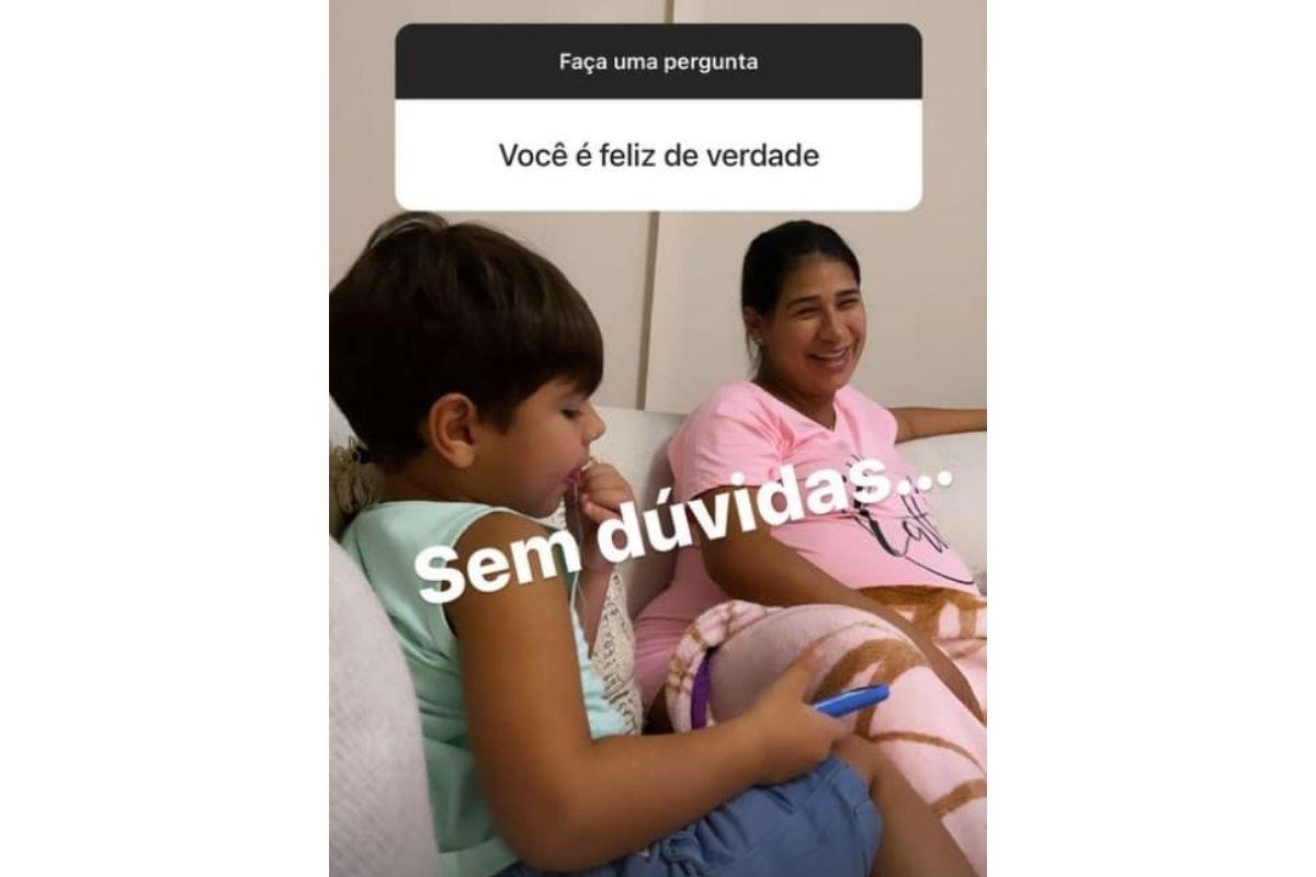 O internauta perguntou: “Você é feliz de verdade?!”. Ele então mostrou a foto da cantora na reta final da gestação e sorrindo ao lado do filho e escreveu: “Sem dúvidas!”. Ao compartilhar a declaração, Simone não gostou nada do marido ter compartilhado aquela foto específica nas redes sociais. “Tô ridícula! Você vai ver! A hora que você estiver mais feio eu vou jogar no mundo!”, disse ela.