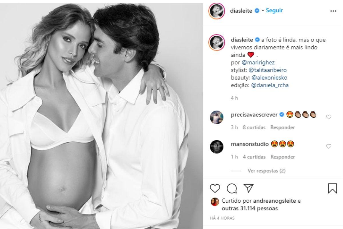 O ex-jogador Kaká e a esposa Carol Dias estão esperando a primeira filha juntos. Nas redes sociais, Carol compartilhou algumas fotos do ensaio de gestante que fez recentemente. “A foto é linda, mas o que vivemos diariamente é mais lindo ainda”, escreveu a influenciadora em uma das publicações.