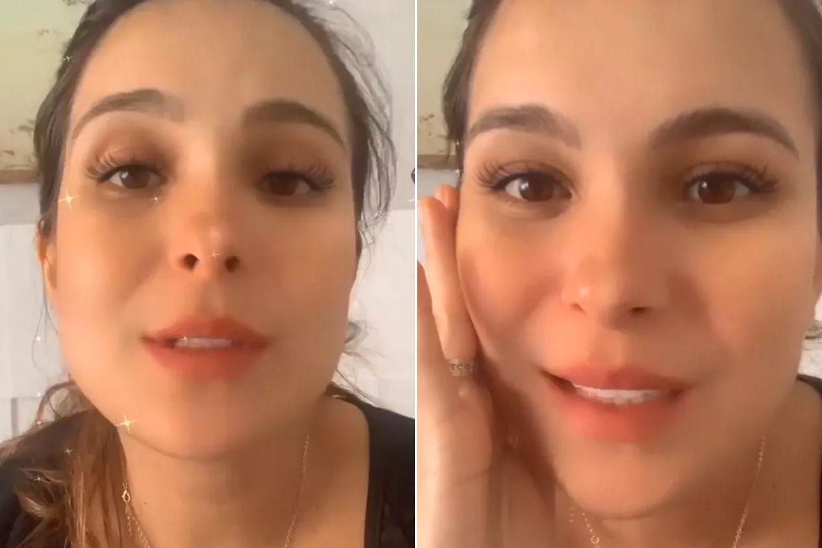 A influenciadora apareceu na frente do espelho com uma saia justa e uma camiseta, onde exibiu a silhueta para os seguidores e desabafou: “Hoje que vi diferença em minha barriga pós-parto. Já deu uma melhorada. É muito engraçado, demora para o corpo voltar. Não é assim, de uma hora para a outra”, disse.