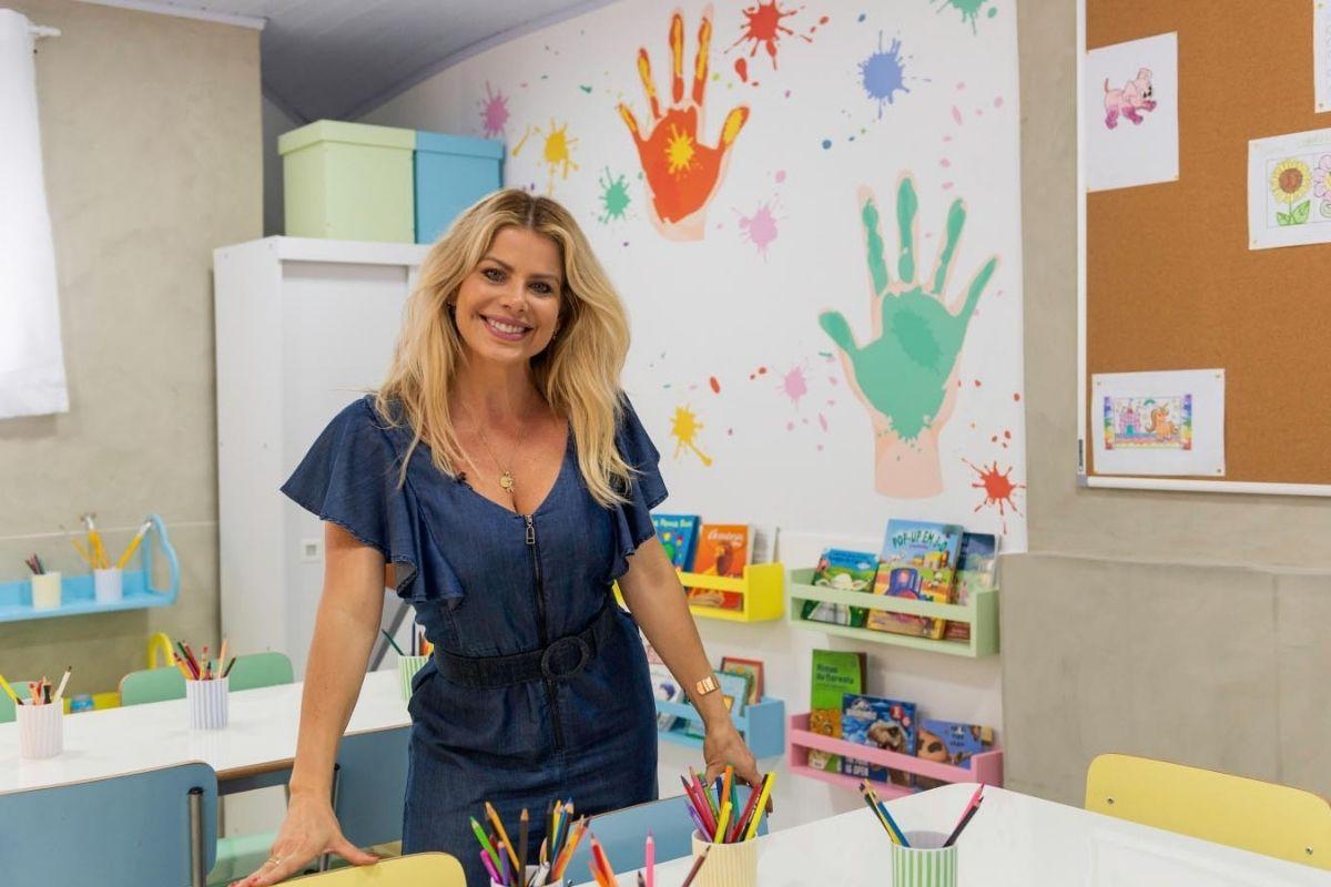 Karina Bacchi participou da entrega de dois ambientes reformados e decorados na ONG Florescer, organização que ela e a mãe, Nádia Bacchi, apoiam. A instituição está localizada no bairro de Paraisópolis, zona sul de São Paulo, e oferece assistência, aulas e oficinas culturais para mais de 260 crianças.