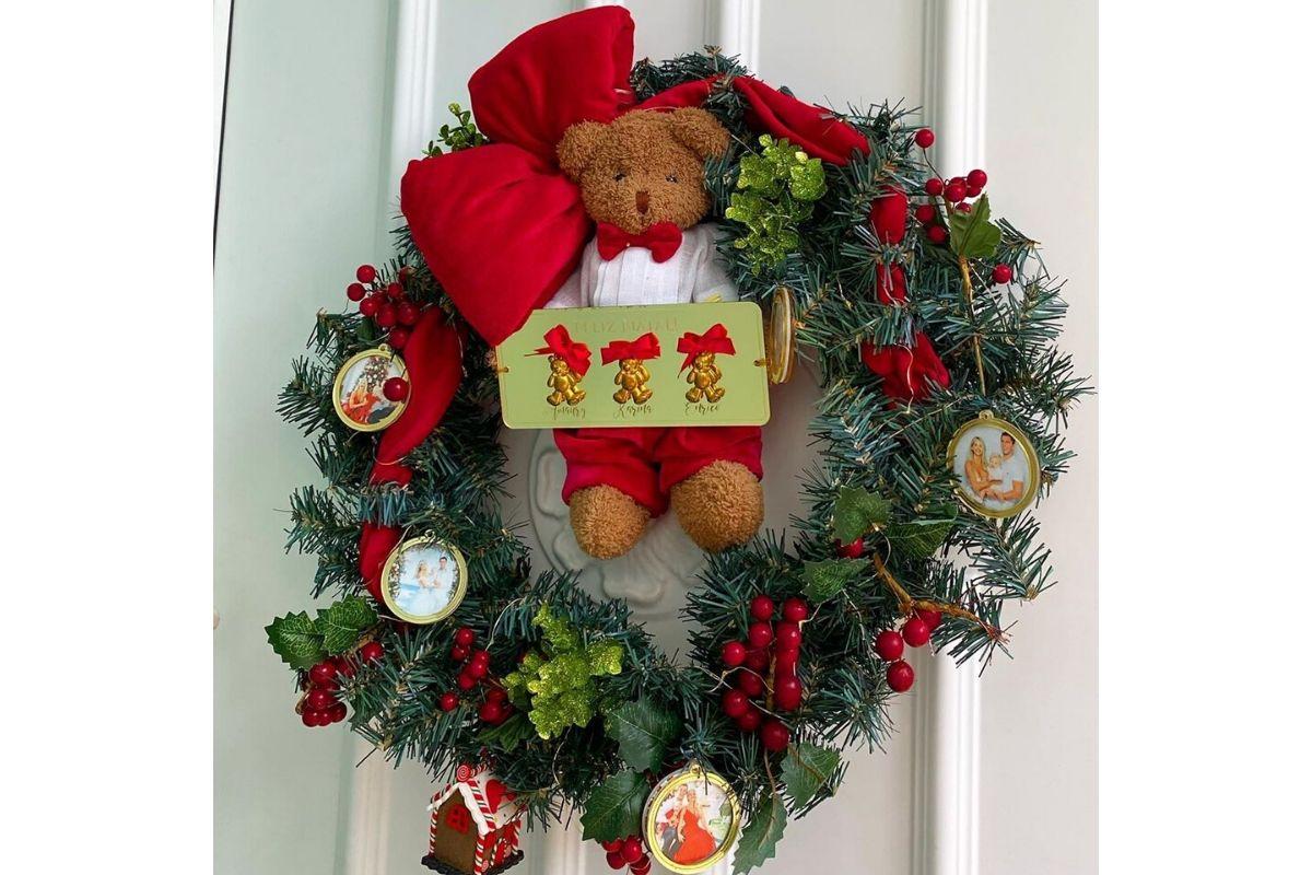 Olha só os detalhes das fotos em família da guirlanda. Achamos muito original! (Foto: reprodução / Instagram @karinabacchi)