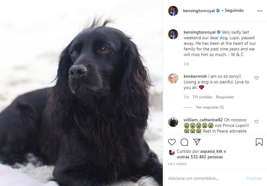 O Palácio de Kensington acordou em luto neste domingo (22). Por meio de sua conta oficial no Instagram, a família real anunciou a morte do cachorrinho Lupo.