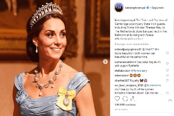 Na última terceira-feira (23), a duquesa de Cambridge, Kate Middleton, homenageou a princesa Diana, em um jantar no Palácio de Kensington, em Londres. A mãe de três (George, Charlotte e Louis), usou a tiara preferida da sogra Lady Di, que está desde 1593 na coleção da família real britânica.