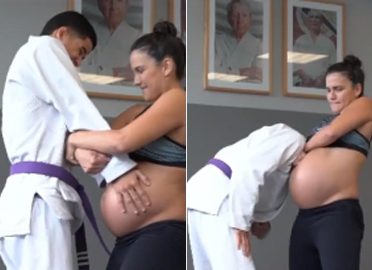 Neste domingo (20), ela impressionou os fãs em um vídeo novo publicado em seu Instagram. A poucos dias de dar à luz, a artista marcial apareceu lutando Jiu-Jitsu em sua academia.