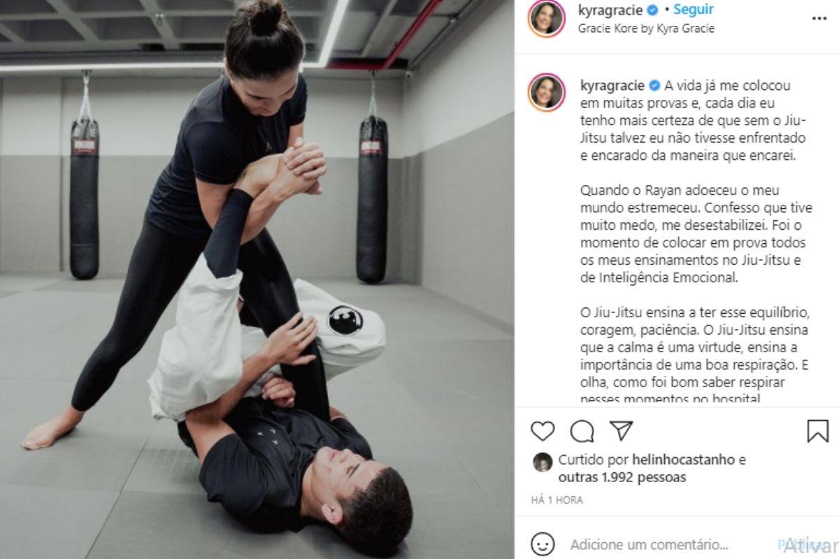 Kyra Gracie já foi 5 vezes campeã mundial de Jiu-Jitsu. Por isso, aproveitou o Instagram para conversar com os seguidores sobre a importância do esporte na sua vida – especialmente durante a internação de Rayan com um caso de bronquiolite, em julho deste ano.