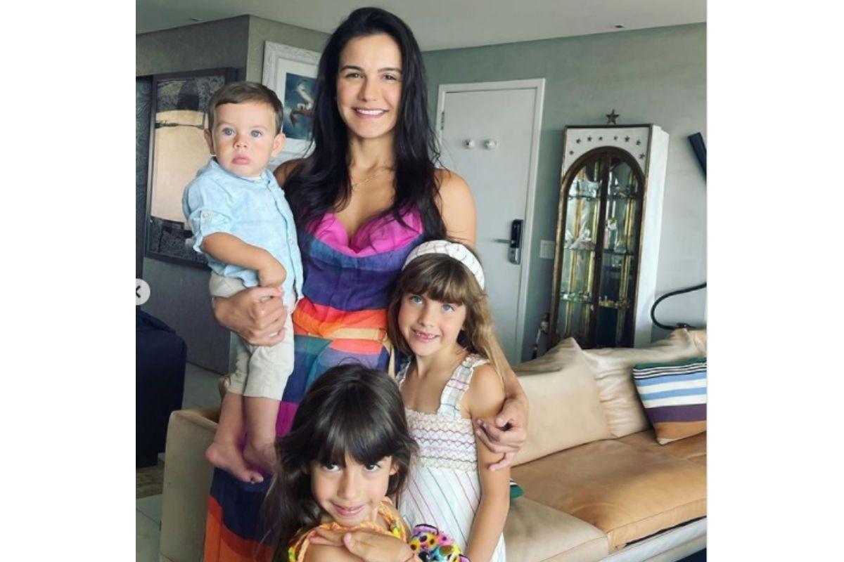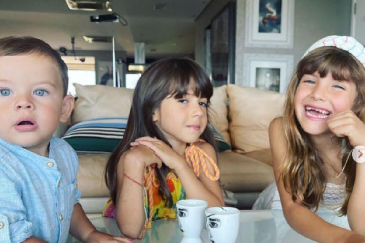 Na primeira imagem, o trio aparece como se estivessem conversando na mesa de casa. Já na segunda, a mãe coruja surge abraçada e sorrindo, aproveitando um momento com os pequenos. “Aproveitando os meus presentes”, escreveu a mãe na legenda da publicação.