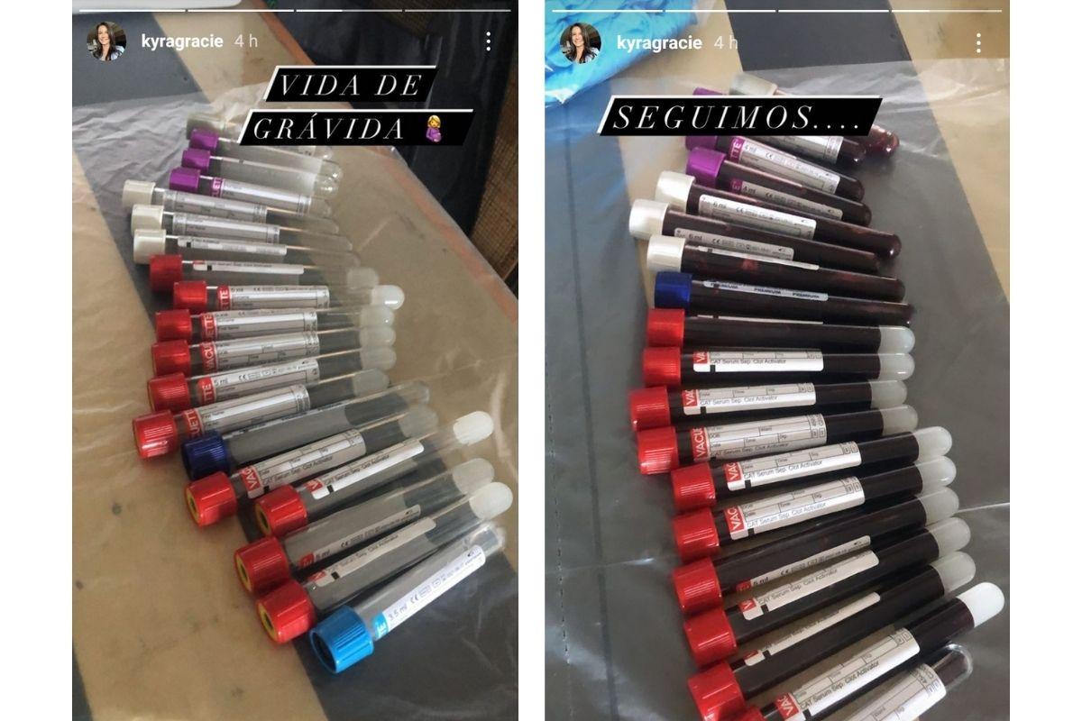 Recentemente, Kyra deu um susto nos seguidores ao mostrar a quantidade de tubos de sangue, retirados para um exame. A lutadora está grávida pela terceira vez de Malvino Salvador, e chegou a brincar na legenda da publicação sobre o momento.