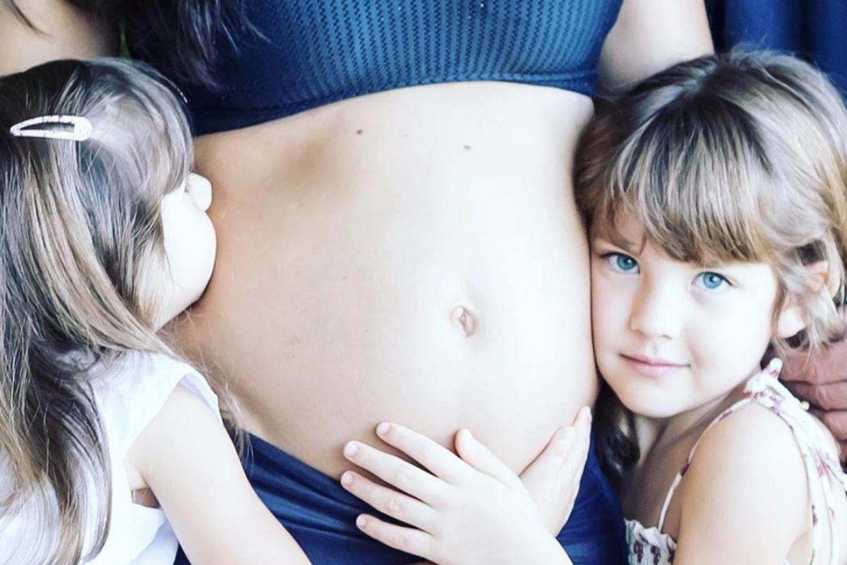 Na imagem, a empresária e pentacampeã de jiu-jítsu – que é casada com o ator Malvino Salvador e espera mais um bebê – recebe o carinho das filhas Kyara, de quatro anos, e Ayra, de seis. “Estamos mimando muito o nosso bebê”, escreveu ela na legenda da imagem.