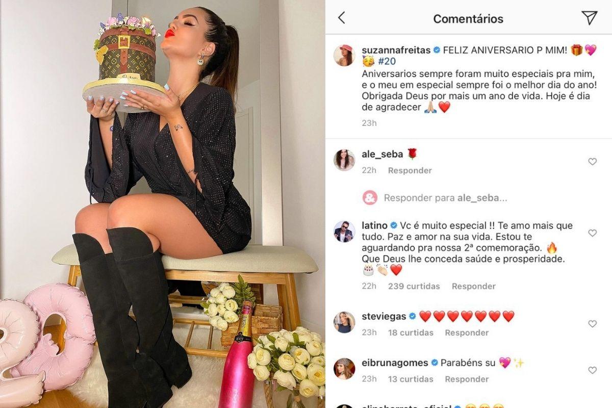 Apesar da comemoração, o que chamou atenção na publicação foi um comentário deixado pelo próprio Latino. “Você é muito especial! Te amo mais que tudo. Paz e amor na sua vida. Estou te aguardando para a nossa 2º comemoração. Que Deus lhe conceda saúde e prosperidade”, o cantor escreveu no post.