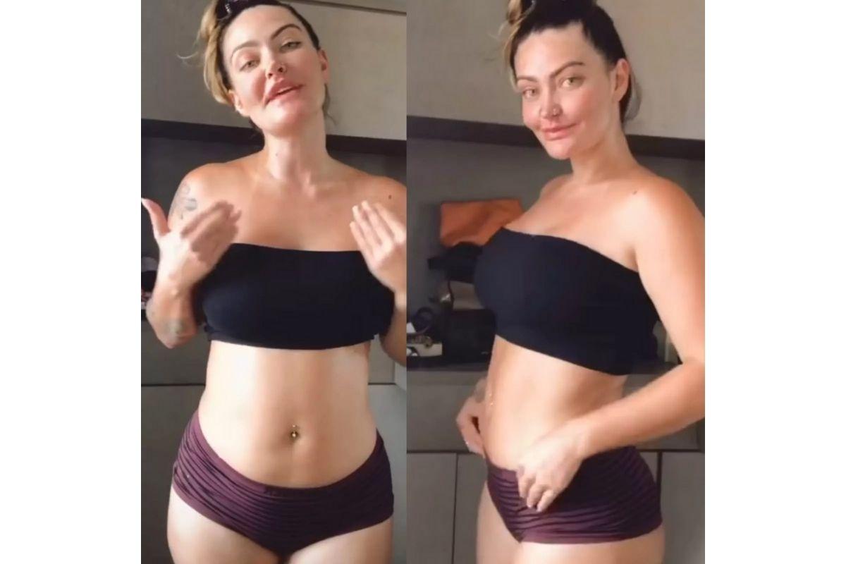 Ela seguiu falando um pouco sobre os cuidados que está tendo com o corpo, a fim de perder os kilos que engordou durante a gestação. “Continuo me cuidando muito. Meu corpo passou por várias mudanças. Tive aumento de peso muito grande, engordei 23 quilos e perdi já 13. Faltam alguns quilinhos ainda. Continuo fazendo dieta e malhando bastante”.