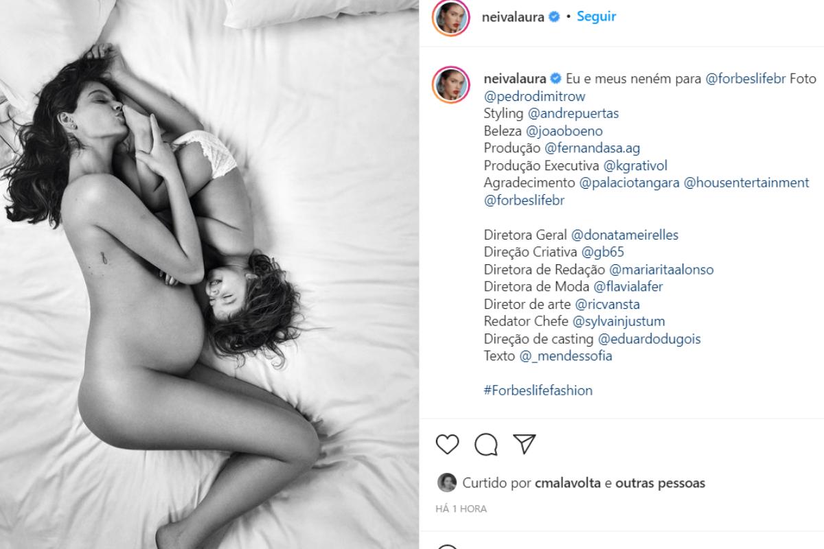 Na foto compartilhada pela modelo, Laura apareceu com a barriga de gestante em um momento de intimidade com a filha mais velha, Maria, ao posar beijando os pés da menina. “Eu e meus neném “, escreveu ela na legenda da publicação. Para ver este conteúdo, clique aqui.