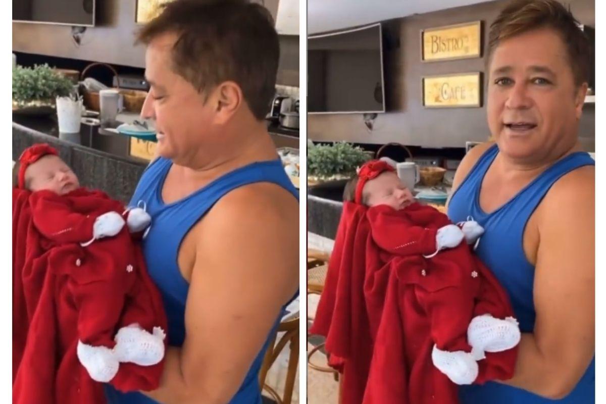 Por meio do Instagram, Leonardo publicou um vídeo em que aparece com a bebê no colo. “Olha que coisa linda”, fala ele, ao mostrar a bebê. “Primeira visita na nossa casinha”, conta Virginia Fonseca. Na legenda, Leonardo aproveitou para encher a neta de elogios e ainda brincar com os internautas. “Surra de fofura passando no seu feed ! Quem é mais lindo, eu ou ela?”, escreveu ele, ao publicar o vídeo.