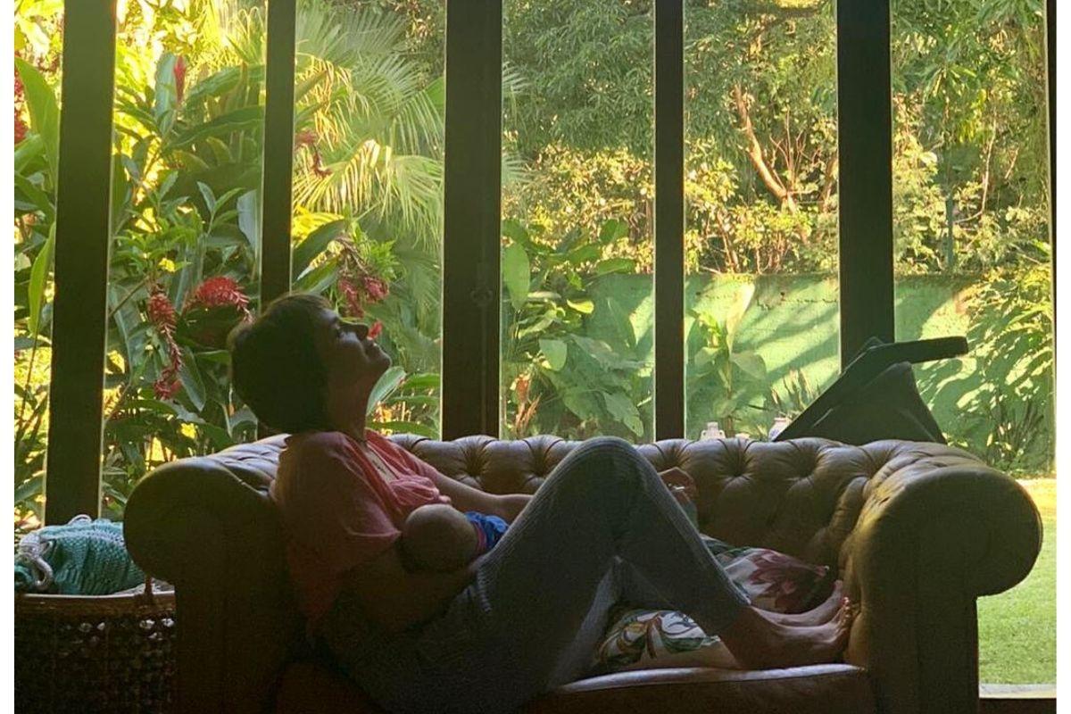 A atriz apareceu sentada em um sofá na frente de uma janela enorme e com o filho de um mês no colo mamando. Na legenda, ela disse como se sentiu chegando a essa idade. “Te amo meus 30 anos.