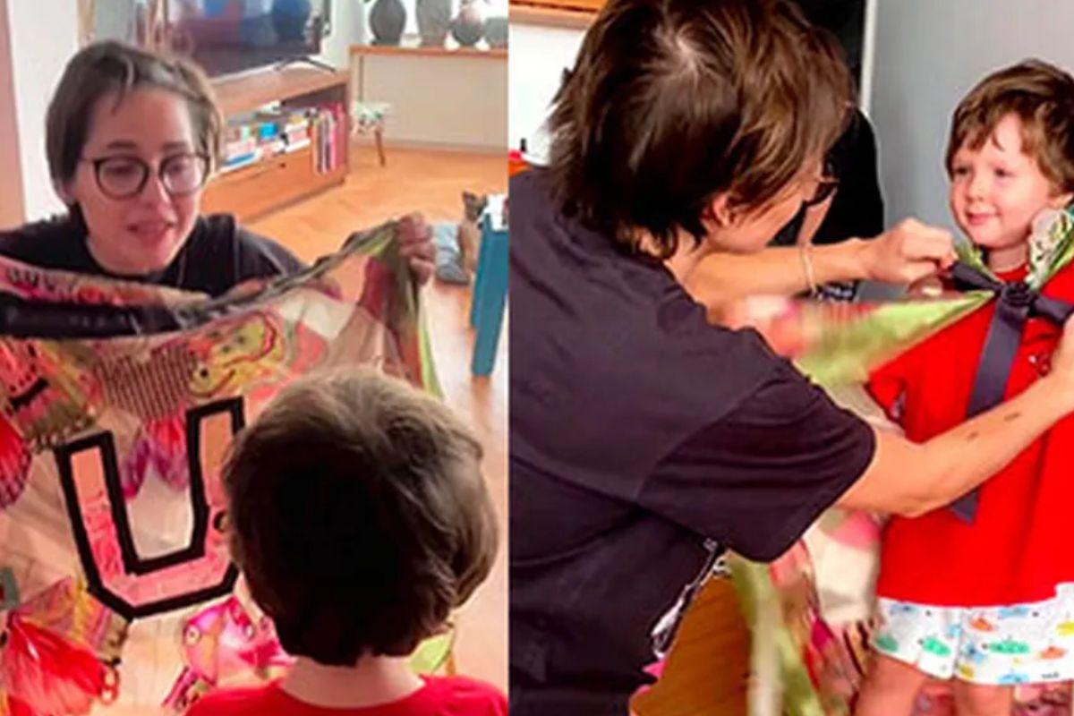 Nas imagens é possível ver que a atriz costurou uma capa de Super Herói exclusiva para o filho.‘’E assim foi uma manhã inesquecível…Meu pequeno Super Herói Uri leu no livro “Dona Paciência” (de @rafaela_galperin ) que a vovó dele prometia e fazia a capa mais especial de todas! Ai pronto! Nasceu na gente o sonho de também fazer uma só dele. E conseguimos. Eu fiquei muito realizada.Outro tempo espaço, que a paciência de colocar a linha agulha nos convida e perceber… Viva nossas crianças ‘’, escreveu a mãe na legenda da publicação do Instagram.