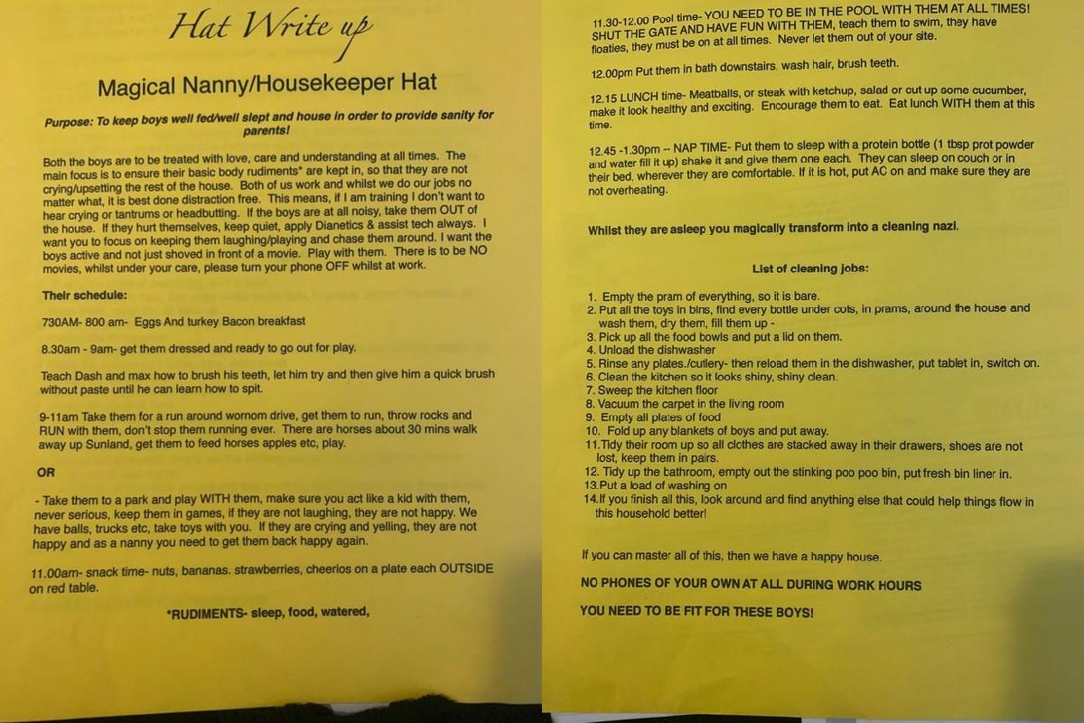 “Em 2013, Eu fui entrevistada por uma família de cientologistas para ser a babá. Eles me entregaram esta lista louca de responsabilidades e agora eu entrego tudo para vocês”, explicou ela na legenda da publicação.