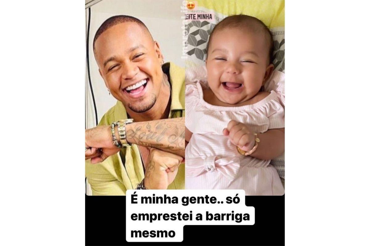 Lore Improta usou o perfil do Instagram para mostrar aos fãs a semelhança entre a filha Liz, e o marido, Leo Santana. Na foto um aparece ao lado do outro e a mãe brinca: “É, minha gente…Só emprestei a barriga, mesmo”, mostrando que a menina realmente é a cara do pai.
