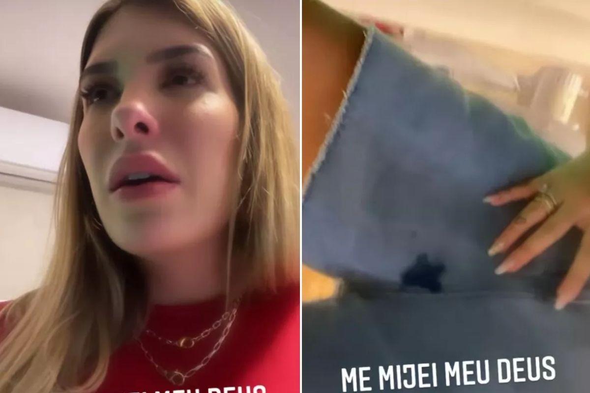 A dançarina aparece gravando stories quando espirra e faz xixi no short. Espontaneamente, ela diz: “Xii, me mijei”. A apresentadora leva na esportiva e depois de rir muito explica: “Gente, não sei se é isso, mas estou com a rinite atacada, que eu não tinha antes. E estou com a bexiga frouxa. Me mijando, não consigo segurar mais”.