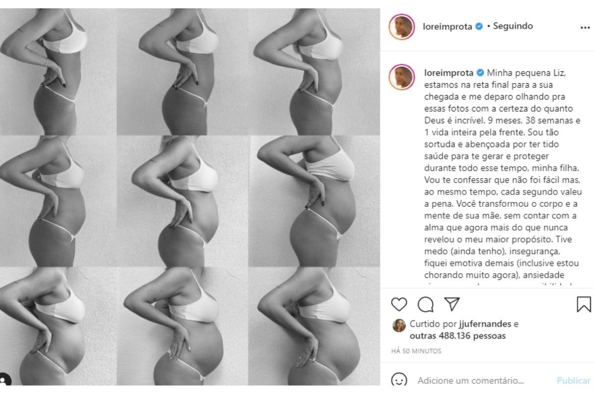 “Minha pequena Liz, estamos na reta final para a sua chegada e me deparo olhando pra essas fotos com a certeza do quanto Deus é incrível. 9 meses, 38 semanas e 1 vida inteira pela frente. Sou tão sortuda e abençoada por ter tido saúde para te gerar e proteger durante todo esse tempo, minha filha. Vou te confessar que não foi fácil mas, ao mesmo tempo, cada segundo valeu a pena. Você transformou o corpo e a mente de sua mãe, sem contar com a alma que agora mais do que nunca revelou o meu maior propósito”, começou ela, contando.
