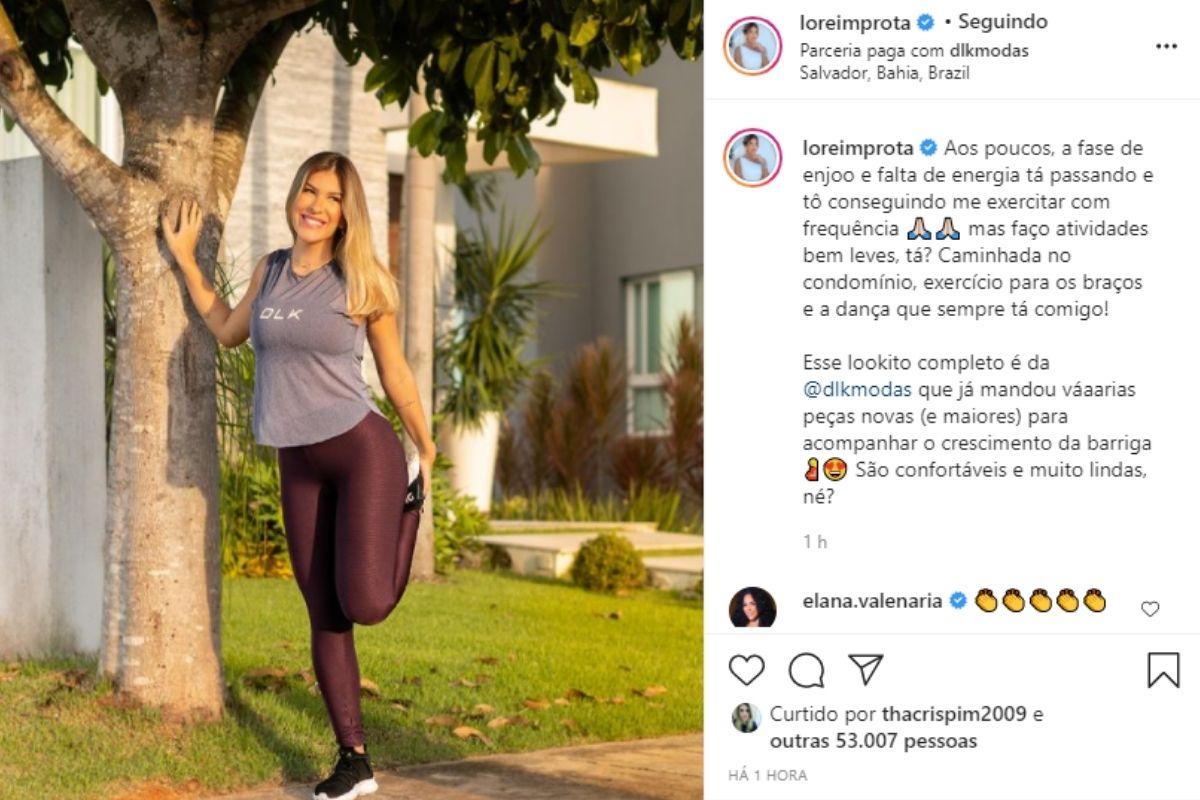 Lorena Improta usou as redes sociais nesta terça-feira, 20 de abril, para falar sobre um tema super importante: a prática de exercícios físicos durante a gravidez. A dançarina, que tem relatado bastante enjoo e falta de energia durante esses primeiros meses de gestação, falou sobre o tema ao compartilhar uma foto em que apareceu se alongando. Lorena está à espera do primeiro filho, fruto do relacionamento com Léo Santana.