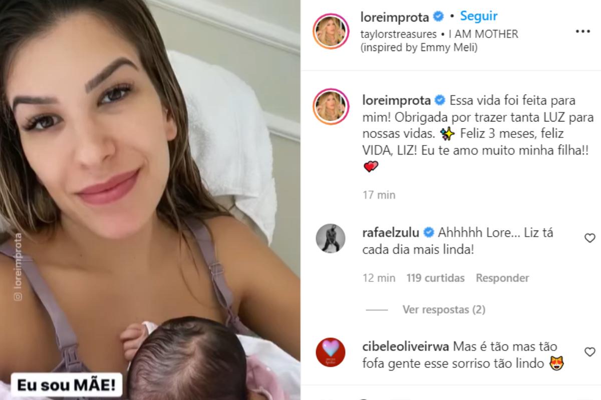Neste domingo, dia 26 de dezembro, Lore Improta utilizou as redes sociais para celebrar o 3º mêsversário de Liz, filha única fruto do relacionamento com Léo Santana. A dançarina compartilhou um vídeo em comemoração, e decidiu exaltar o lado real da maternidade para os seguidores que a acompanham.