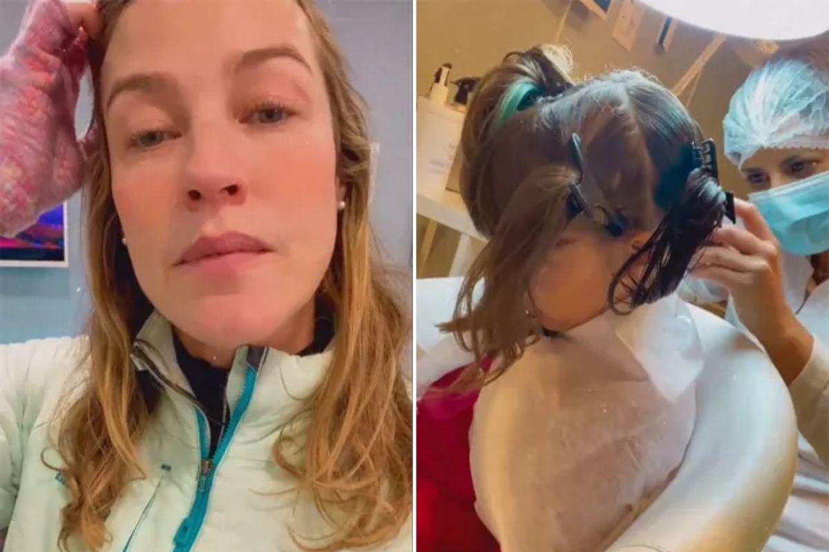 A mãe filmou o momento em que uma profissional dividia o cabelo de Liz e ia passando um pente fino. “Eu ali comendo batata perguntei ‘e aí, Inês, achou alguma coisa? E ela ‘sim, sim’. E eu ‘sim sim o quê?’. E ela ‘piolhim, piolhão’”, relatou.