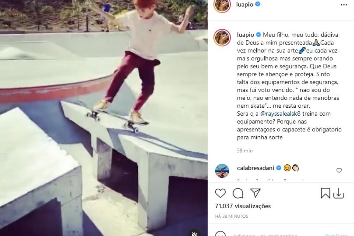 Esta não é a primeira vez que Luana faz apontamentos na Internet sobre a prática do filho. No dia 27 de julho deste ano, ela compartilhou um post no Instagram comemorando a boa performance do filho mais velho Dom ao andar de skate. A atriz, em meio as palavras alegres, também desabafou sobre a criança não utilizar equipamentos de proteção quando pratica o esporte.