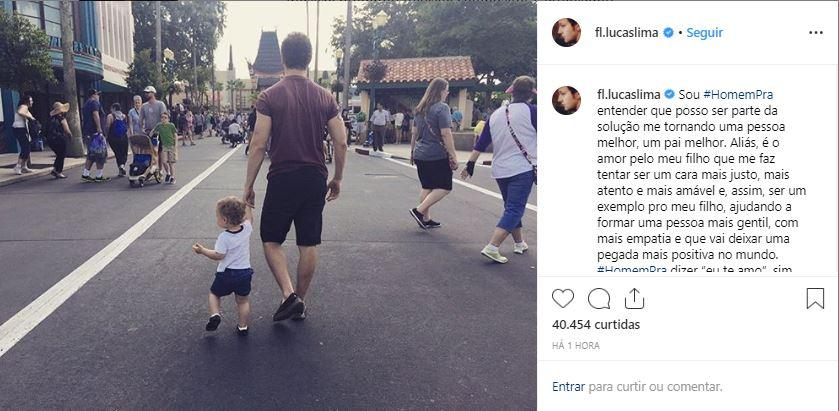 “Aliás, é o amor pelo meu filho que me faz tentar ser um cara mais justo, mais atento e mais amável e, assim, ser um exemplo pro meu filho, ajudando a formar uma pessoa mais gentil, com mais empatia e que vai deixar uma pegada mais positiva no mundo”, continuou Lucas.