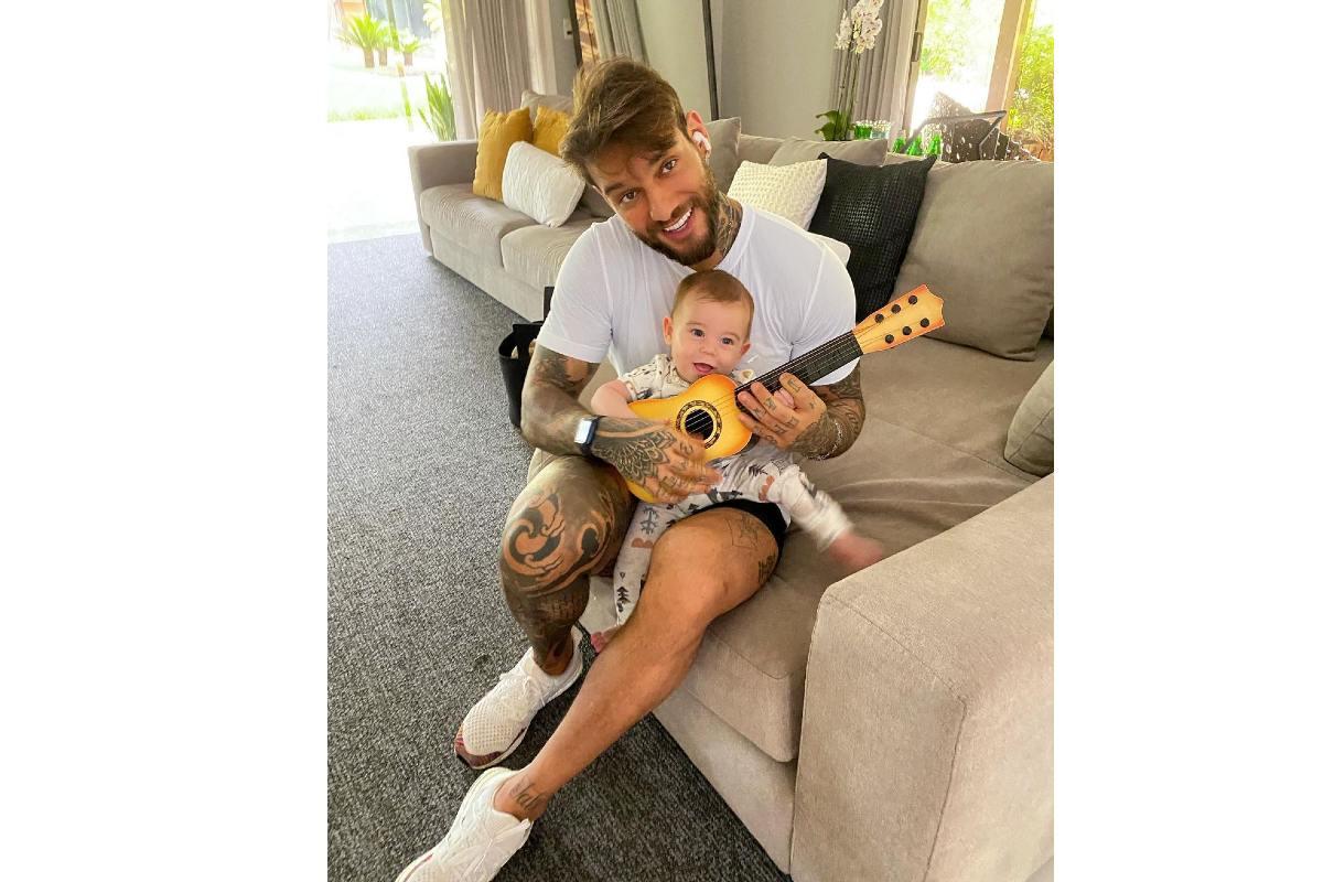Na publicação feita no Instagram, Lucas aparece sentado no sofá com o filho nos braços. O menino, no colo do pai, segura um mini violão. Uma fofura! E parece levar jeito para isso.