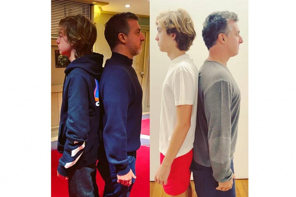 Nos stories, Luciano publicou dois cliques, em que ambos aparecem de costas um para o outro, para modo de comparação. “Quando seu filho te ‘passa’ na altura…”, disse o apresentador na legenda.