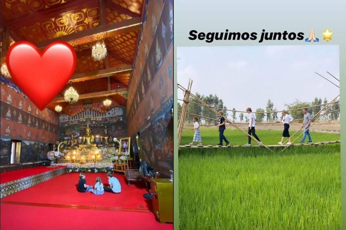 A família se encontra na Tailândia, e já compartilhou diversos momentos com os internautas. Primeiro eles visitaram uma plantação de arroz e depois o templo budista Wat Mahathat Ayutthaya.